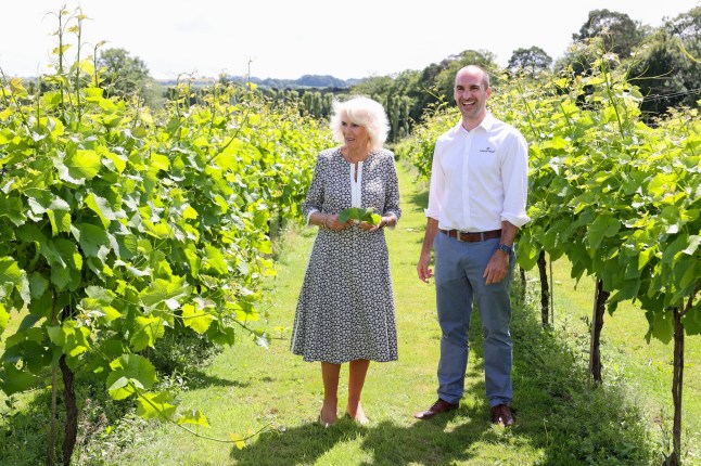 Even the Queen is a fan: Camilla meets the owner of Llanerch Vineyard,Ryan Davies,in Pontyclun (Picture: PA)