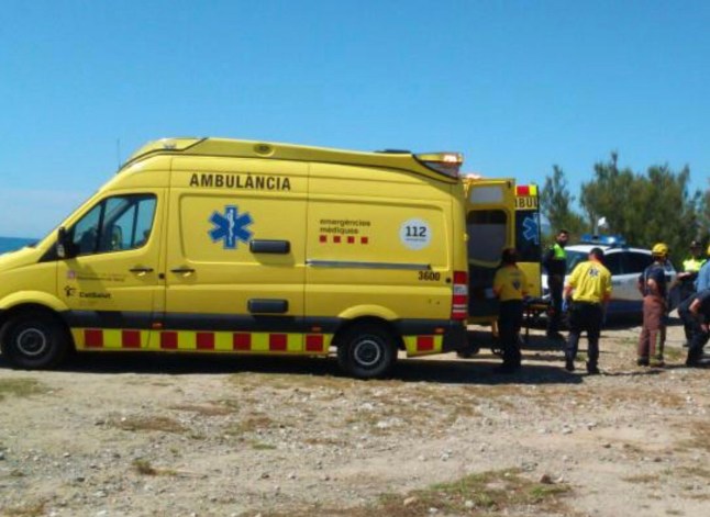 An ambulance on Cap Sant Pere beach where the British tourist died (Picture: SOLARPIX.COM)