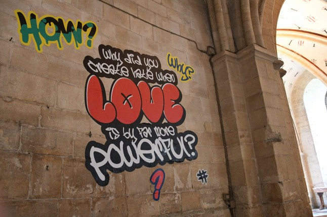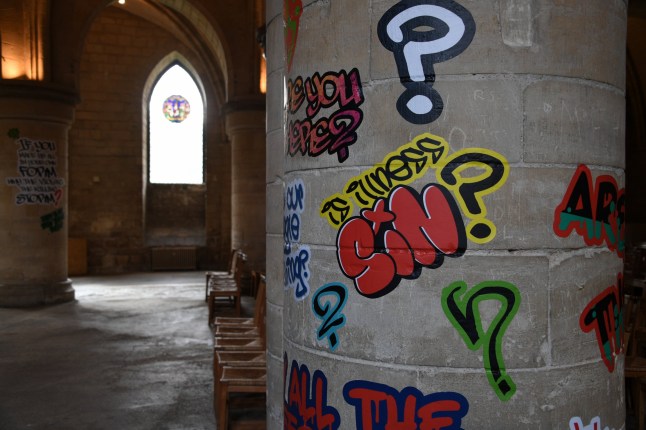 The Church of England has allowed artists to cover Canterbury Cathedral’s ancient stone walls with urban artwork (Picture: Canterbury Cathedral)