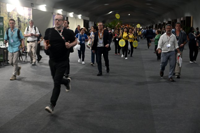 Delegates run from the 30th United Nations Climate Change Conference (COP30)