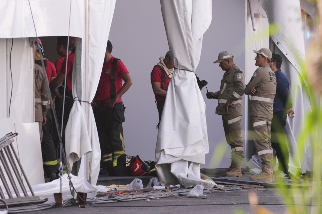 Firefighters at the scene after a fire at COP30 (Picture: AP Photo/Andre Penner)