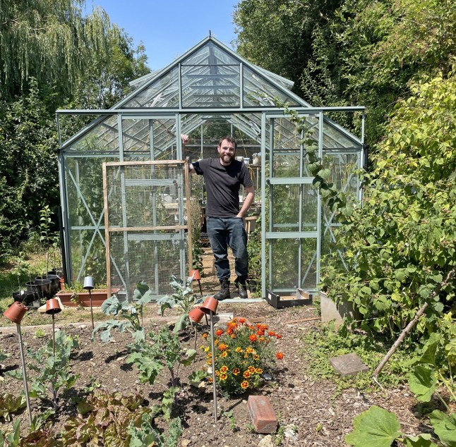 The blogger has an allotment in his garden to grow crops (Picture: Dan Goss)
