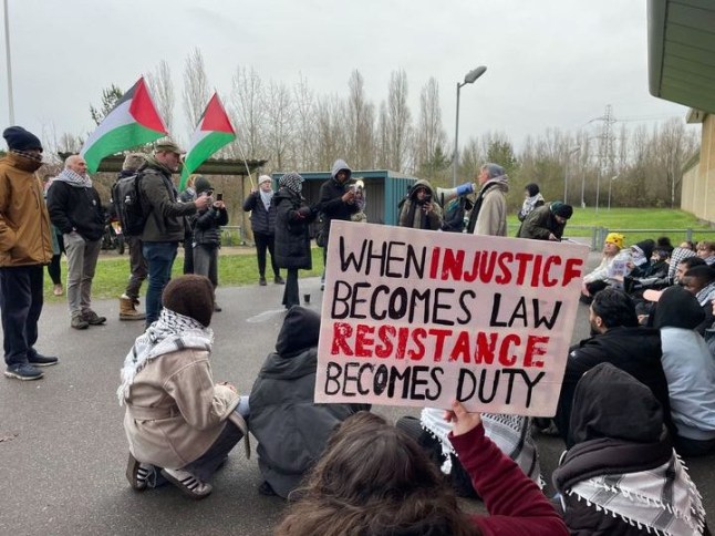 Protesters sat on the floor outside the prison HMP Bronzefield in Surrey,where hunger striker Qesser Zuhrah was ill (Picture: Metro)