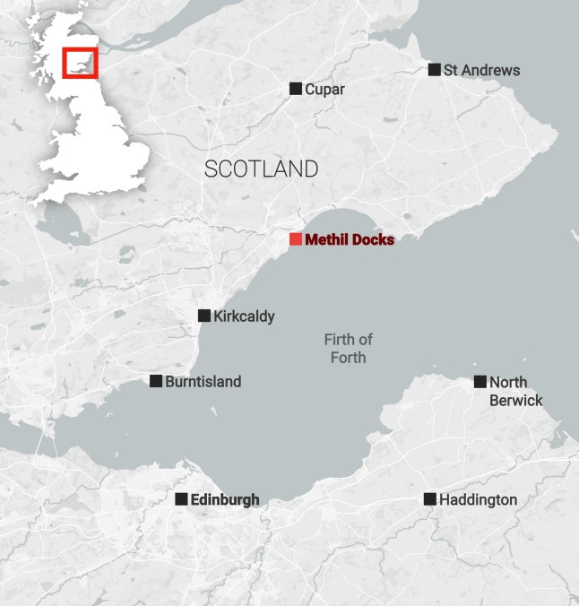 The fire broke out at Methil Docks in Fife,near Edinburgh (Picture: Metro.co.uk)