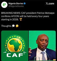 The president of the Confederation of African Football (CAF),Patrice Motsepe,confirmed on Saturday in Rabat that the Africa Cup of Nations (AFCON) will be held every four years starting in 2028.