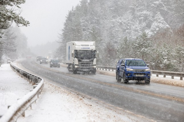 Traffic on the A9 south of Inverness as snow and ice is likely to cause severe travel disruption this weekend (Picture:: Paul Campbell/PA Wire)Snow and ice are also expected in Wales and in the South West region,with a yellow warning in place for Devon and Cornwall covering Taunton,Exeter,Plymouth and Truro.Met Office chief meteorologist Rebekah Hicks said: ‘Arctic air and brisk northerly winds are gripping the UK as we start the new year.‘Snow and ice warnings remain in force for many areas,with the risk of heavy snow showers,especially across northern Scotland and over higher ground elsewhere,though many inland areas will stay largely sunny and clear.’