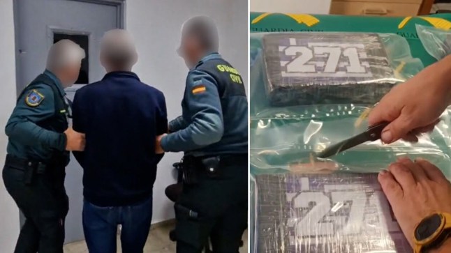 Pictures released by the Civil Guard show a man being taken into custody,the cocaine,and where it was found.
