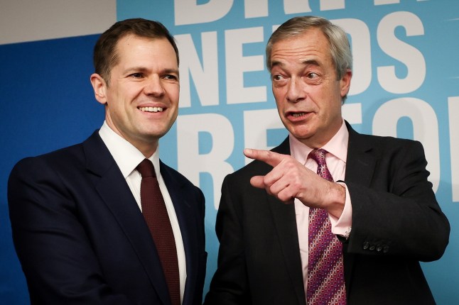 Jenrick with Farage after announcing his defection to Reform UK earlier this week (Picture: EPA)