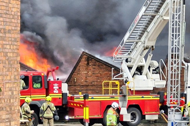 One of the 100 firefighters tackling ‘toxic’ factory blaze (Picture: WMFS)‘A very large fire indeed as burning since 7.30am this morning.’