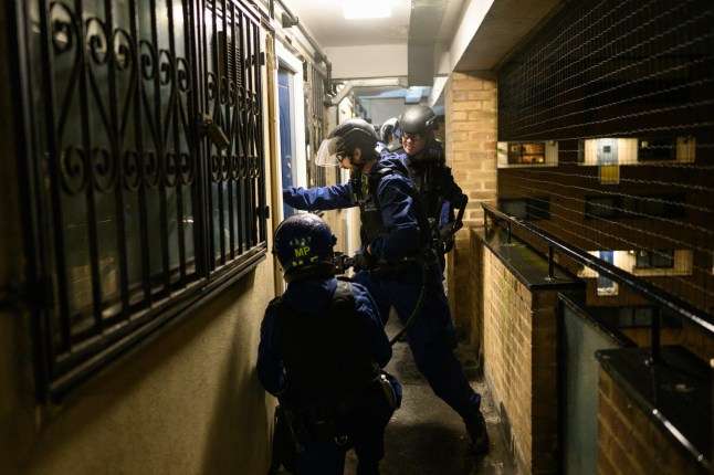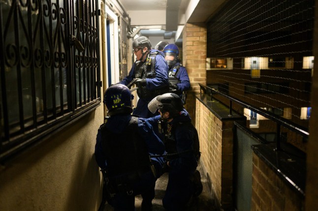 The Metropolitan Police conduct an early morning raid on a premises in north London where they suspect drug dealing is being carried out (Picture: Justin Griffiths Williams/Metro)