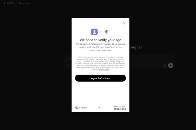 Age checker Persona examines the selfie (Picture: ChatGPT)