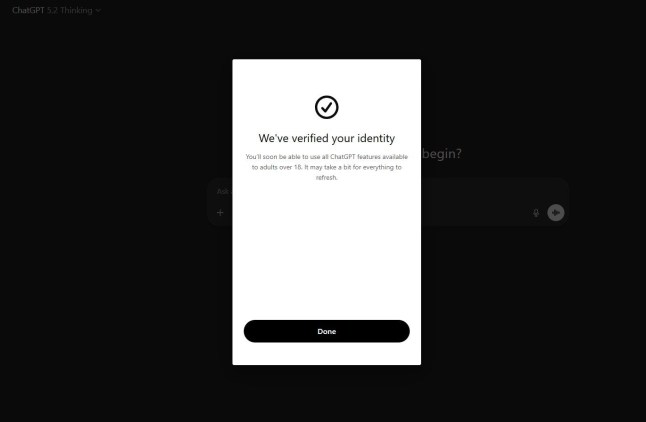 After the system believed them to be an adult,a pop-up appeared,reading: ‘You’ll soon be able to use all ChatGPT features available to adults over 18.