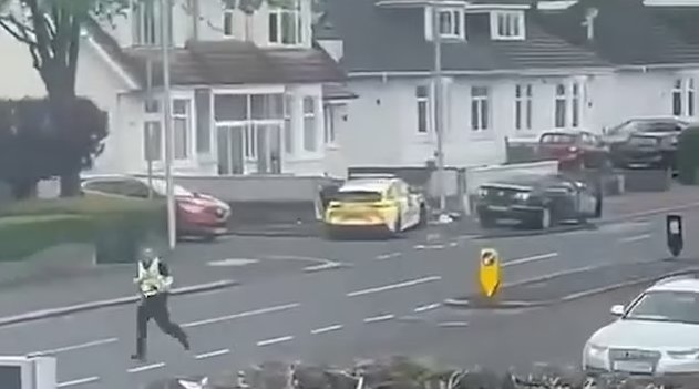 Kastrati chased the officer with a chainsaw,shouting f*** the police’,after he crashed his Volkswagen car into a police vehicle.