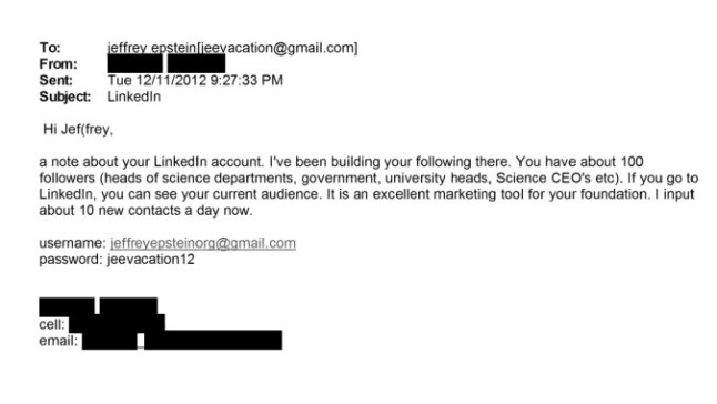 Reports claim passwords from several of Epstein’s accounts were included in the recent files release,including his Outlook,Yahoo,Apple ID and other services.