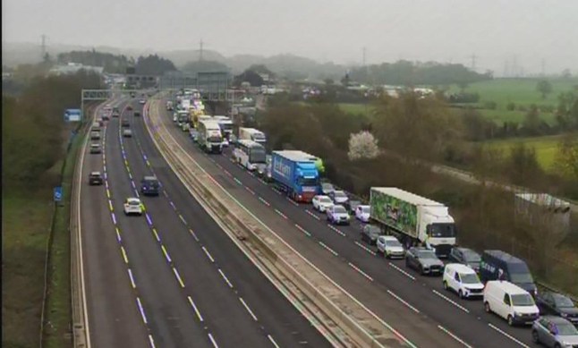 Road cameras show long queues building on the northbound carriageway.