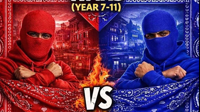 Parents were urged to pick up their children from the school gates,as teenagers were told to ‘jug and bang’ pupils from different schools depending on whether they were on Team Blue or Team Red.