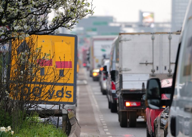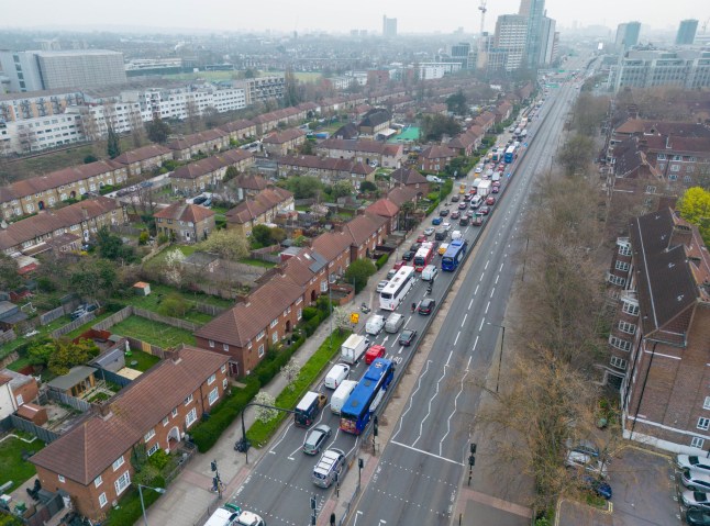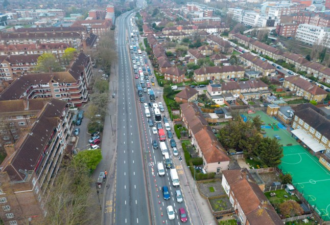 Earlier today,queues of cars,lorries and buses could be seen all along the road waiting patiently to commute into London.