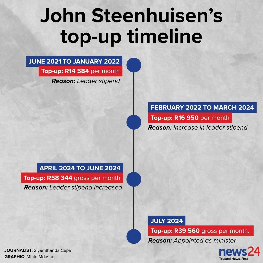 “This was increased to R16 950 per month from 1 February 2022 to 31 March 2024. From April 2024 to June 2024,it was increased to R58 344 gross per month,equating to his salary being on par with that of a premier.