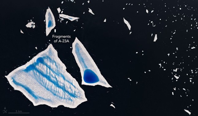 Fragments of Iceberg A-23A are seen in January as it entered its final weeks (Picture: NASA Earth Observatory/Cover Media)