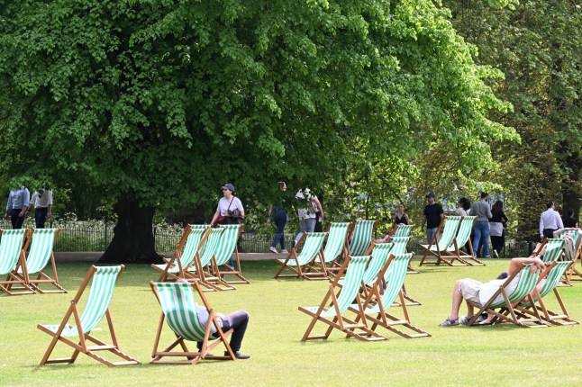 People enjoying the afternoon sunshine in St James’s Park,London yesterday,when the UK saw its warmest start to May on record (Picture: 2025 James D. Morgan)