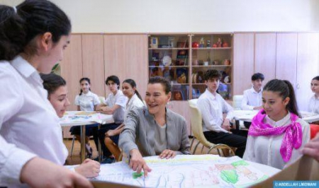 Princess Lalla Hasnaa,President of the Foundation for the Safeguarding of Cultural Heritage of Rabat,who is currently paying a visit to Azerbaijan,visited the “Educational Complex 132–134” secondary school in Baku on Wednesday,as part of the educational twinning project between schools in Rabat and the Azerbaijani capital.