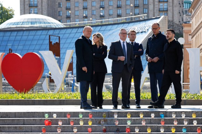 The leaders pose for a picture at the Independence Square (Maidan) in Kyiv on May 10,2025,ahead of a gathering of European leaders in the Ukrainian capital (Picture: AFP)
