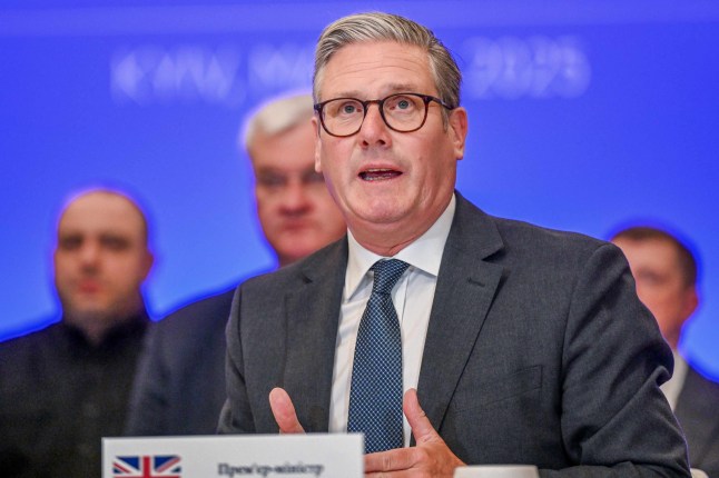 Sir Keir attends a meeting of the ‘coalition of the willing’ at the Mariyinsky Palace,the official residence of the president of Ukraine (Picture: EPA)