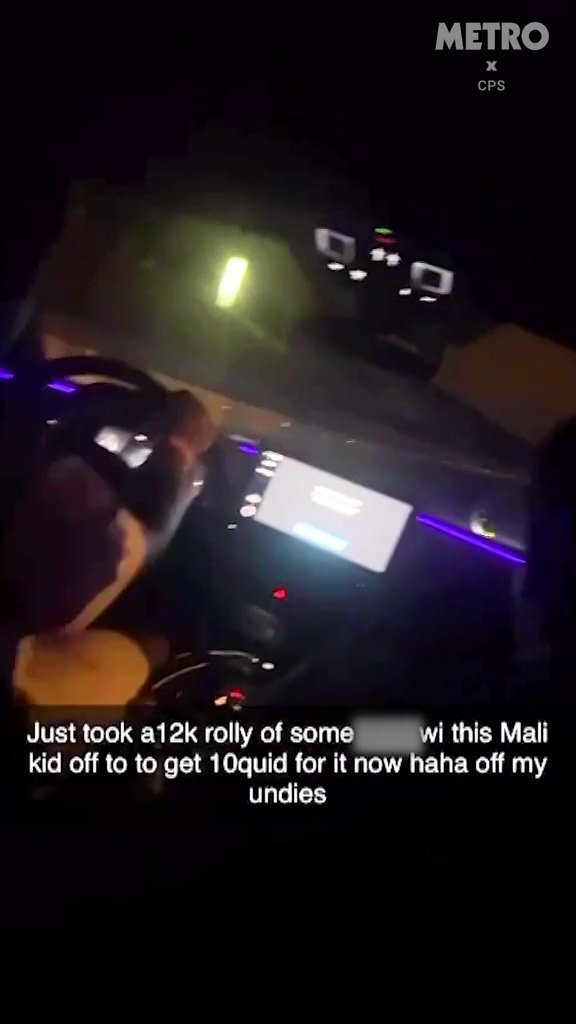 The caption reads: ‘Just took a 12k rolly of some c*** with this Mali kid off to get 10quid for it now haha off my undies.’