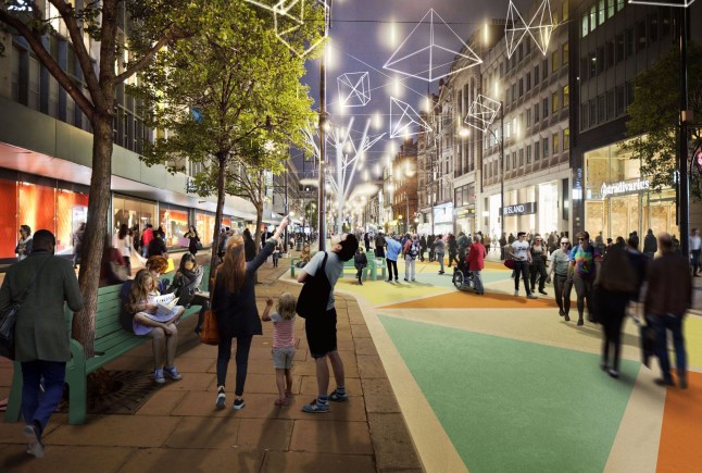 Oxford Street would be turned into a traffic-free zone with space for events and activities (Picture: Mayor of London/PA Wire)