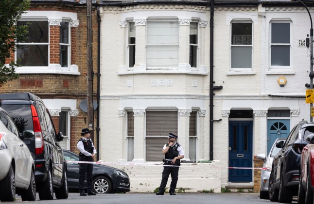 Police officers guarded the cordon on Claxton Grove,London,where Jordan Rodney was fatally injured (Picture: Marcin Nowak/LNP)
