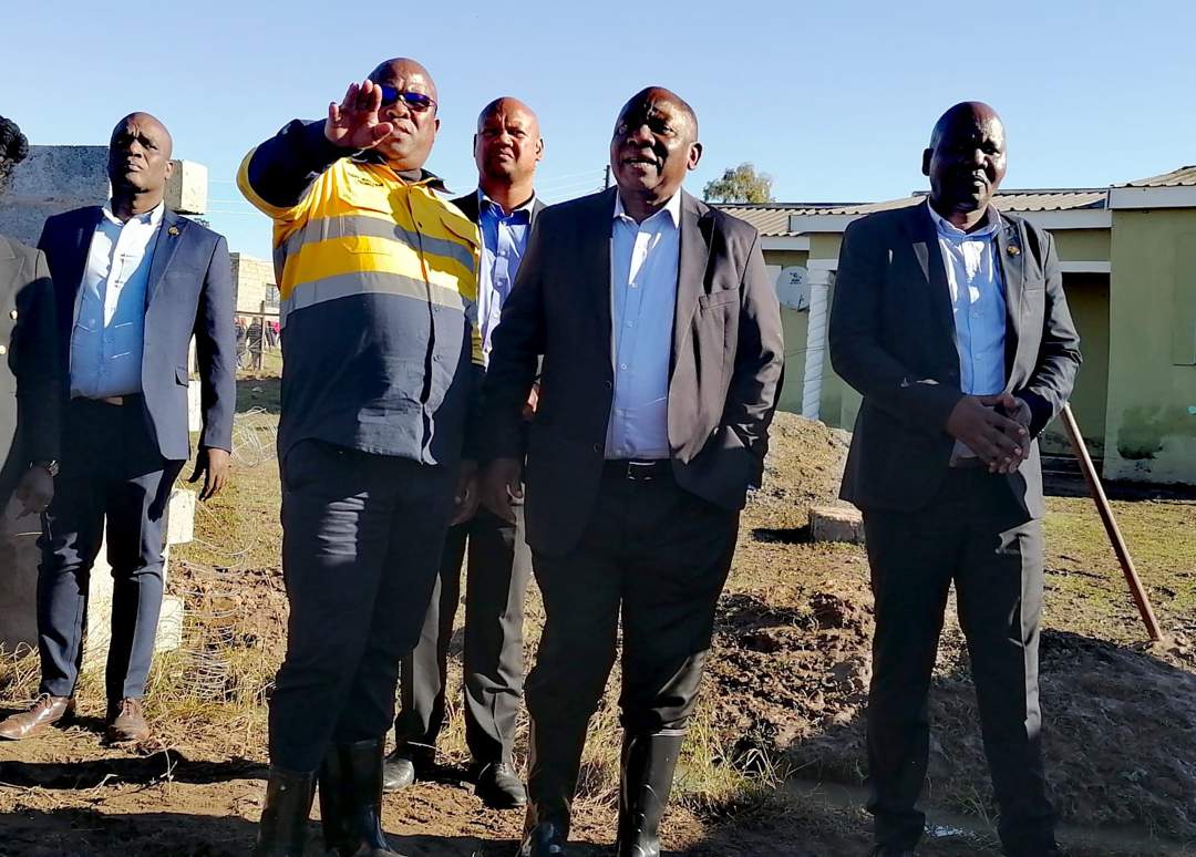 Eastern Cape Premier Oscar Mabuyane and President Cyril Ramaphosa at the flood-hit village of Decoligny in Mthatha on Friday.