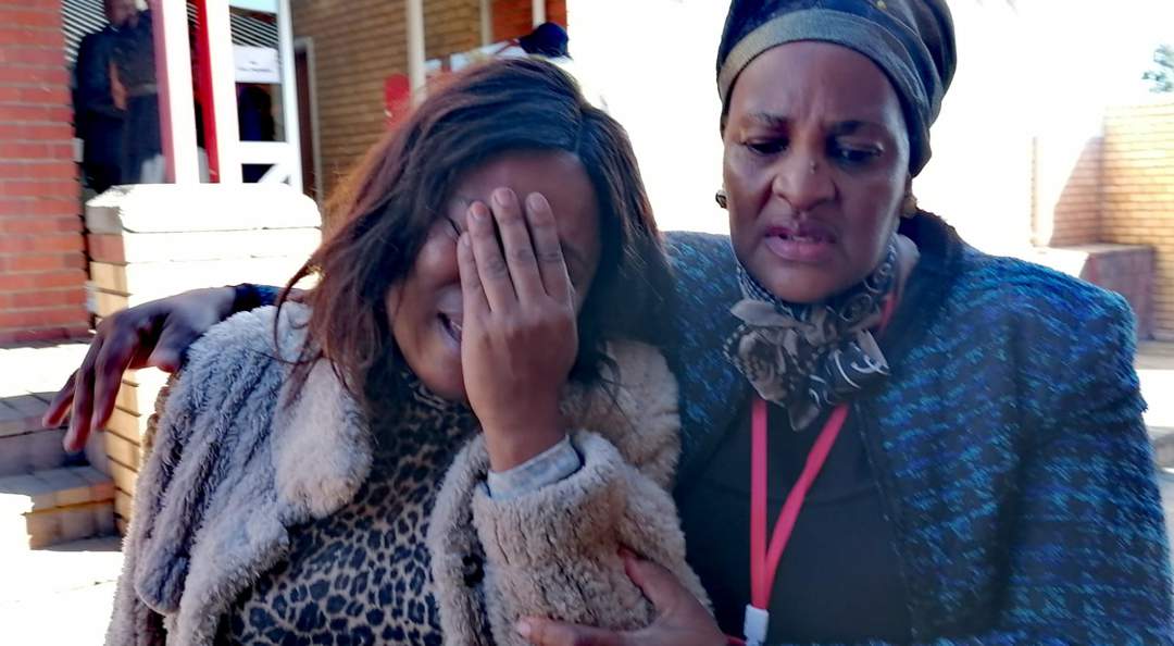 A mourner is being comforted by a social worker outside King Sabata Dalindyebo TVET College in Mthatha where the Eastern Cape held a mourning service for victims of a deadly deluge that has claimed at least 92 lives.