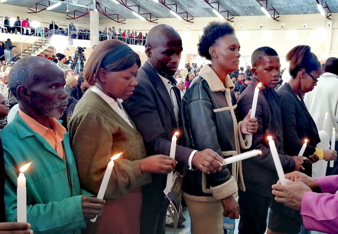 Grieving family members during a Provincial Day of Mourning at King Sabata Dalindyebo TVET College in Mthatha on Thursday to honour the lives of those who died in last week's floods.