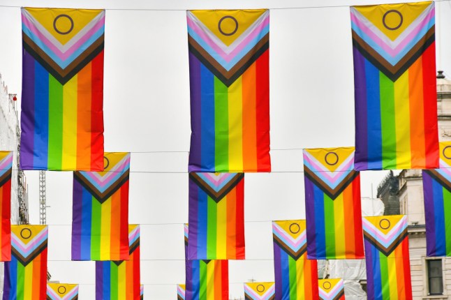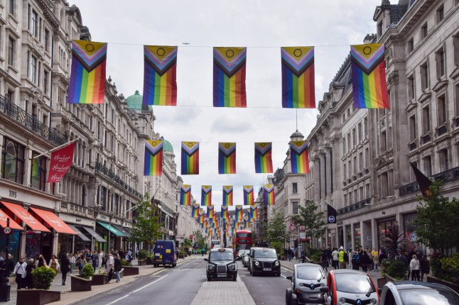 The inclusive pride flags hung last year on Regent Street (Picture: Getty)