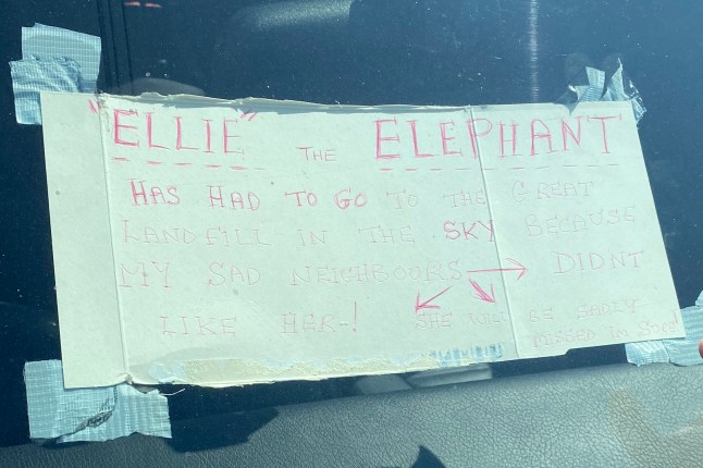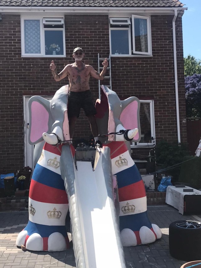 The towering slide has been confiscated (Picture: SWNS)Trevor said: ‘I saw them taking it away [from the leisure park] and said,‘no I will have it.’ They thought I was joking. Then he delivered it to my house for free.‘People loved it. I wanted to let kids and their parents come round and use it and give the money to charity.’Trevor had hatched a plan to use a crane to lift Ellie over his house to become the “crowning glory” of his collection of garden ornaments.However,on Thursday last week,one of the subcontractors came by,saying that due to neighbour complaints,the council had ordered him to take the slide away,he claims.Trevor,who has been attending the Strand leisure park – Ellie’s former home – since he was a child,says that the elephant is part of his fondest memories.Now,the self-proclaimed ‘eccentric’ says that he is willing to pay anything to get Ellie back – even to give up one of his Jaguar cars.