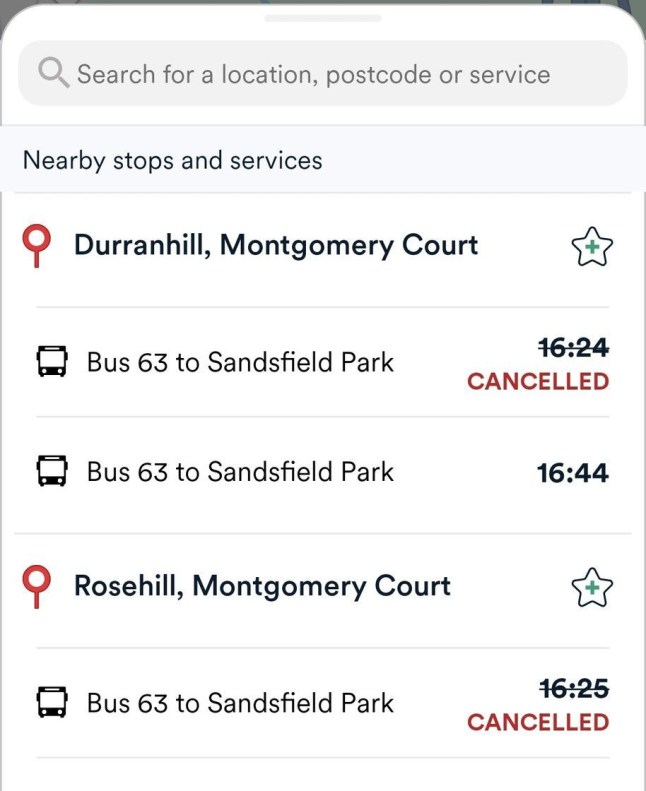 The cancellation notice Gary sees on his Stagecoach App (Picture: Gary Glover)Every day,Gary hopes to take bus from Margaret Creighton Gardens towards Durranhill Terminus after dropping his son Ethan,6,off at school.He then tries to ride the 4.24pm bus from Montgomery Court back to Sandsfield Park after work.But despite paying £114 a month for Ethan and his bus passes,he claims the 63,which is run by Stagecoach,has been blighted by cancellations.He has scores of screenshots of his Stagecoach App where both services come up as cancelled.Or,as happened on Wednesday this week,the scheduled bus time is marked neither as ‘cancelled’ or coming,but never appears.The 56-year-old added: ‘It’s absolutely ridiculous. It’s quite often you don’t get notice that it’s going to be cancelled. It’s literally cancelled at the last second.’