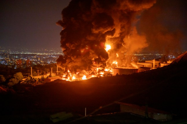 Fire and smoke rise into the sky after an Israeli attack on the Shahran oil depot on June 15,2025 (Picture: Getty)