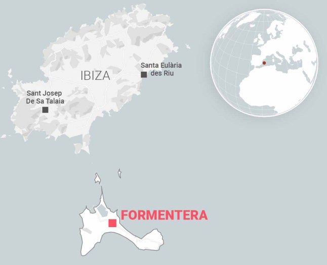 A map shows where the British woman went missing off the island of Formentera (Picture: Datawrapper)