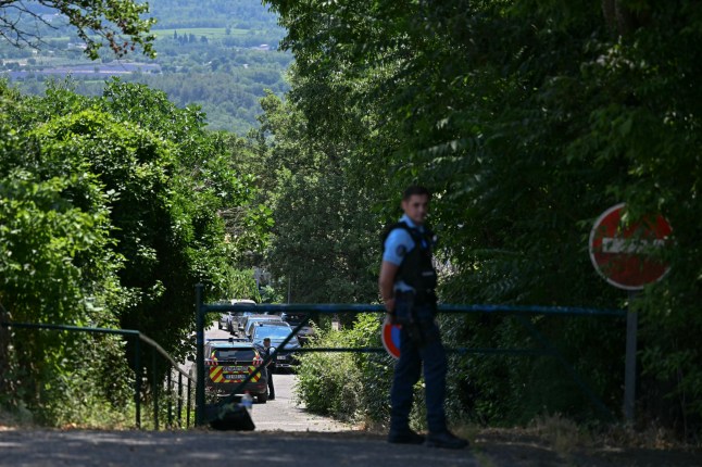 French gendarmes secure a perimeter near the site of the fatal shooting (Picture: AFP via Getty Images)