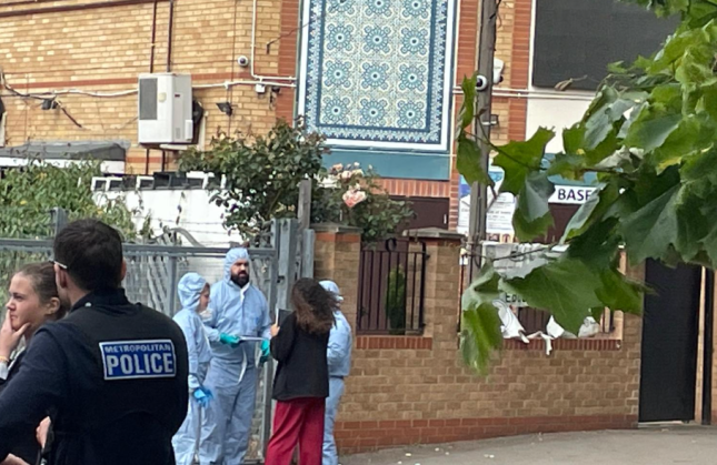 Forensics outside Central Mosque of Brent where one of the victims looked for help