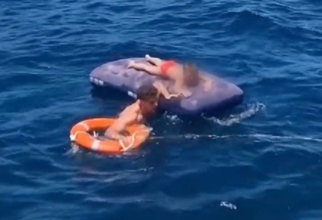 The captain found the child in the middle of the sea and manoeuvred the inflatable unicorn to safety.