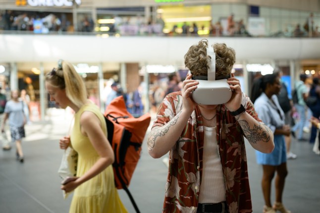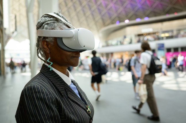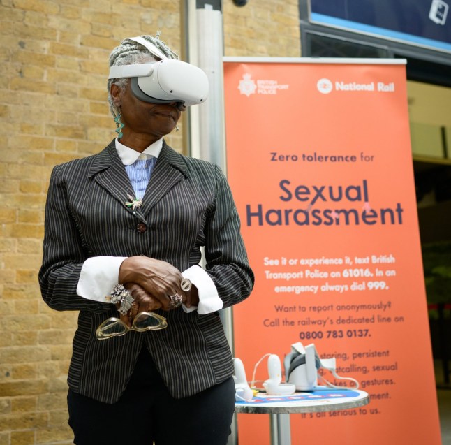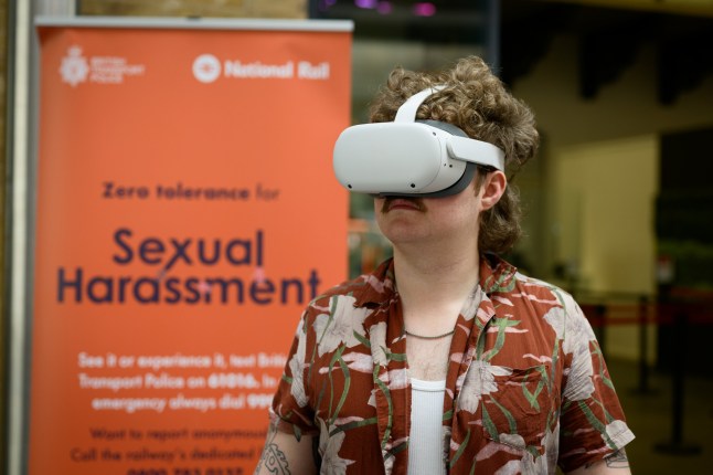 Railway officials hope the experience,being hosted at various train stations,will embolden riders to intervene when they see harassment (Picture: Justin Griffith-Williams)‘VR gives us the ability to show people how uncomfortable and disturbing some of these scenarios are,’ Catherine explains.‘Sexual harassment is a societal issue and it happens in all public places – including on the railway… People might accept it,“oh,that’s just how things are”,so we want to change that.’One way to do this,she adds,is to encourage passengers to intervene when they see inappropriate behaviour,if it’s safe to do so,and report it.According to the Railway Delivery Group,85% of women would feel relieved if someone intervened while they were experiencing sexual harassment.And that opportunity arises in all three VR scenarios. A pop-up asks me if I want to stop this happening – so I press ‘yes’,of course – and I’m shown a small action a bystander can do to prevent further escalation.This can include asking to swap seats,distracting the attacker with a question or,as was the case with the catcalling scene,if it’s one of your friends harassing someone,telling them to stop.