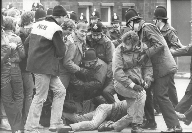 Police and striking miners were clashing at pickets across the country (Picture: Jim Duxbury/ANL/REX/Shutterstock)