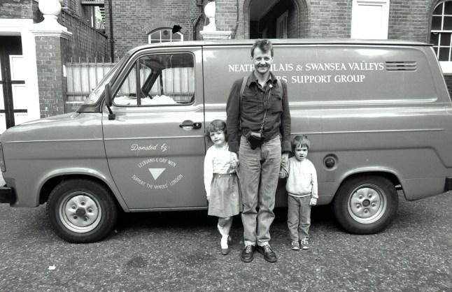 A LGSM Symbol on the Neath,Dulais and Swansea Valleys miners van (Picture: Lesbians and Gays Support the Miners)Their unlikely friendship turned out not just to be crucial support for the striking workers,but also sparked an outpouring of support for LGBTQ+ people after the Neath,and Swansea miners began wearing LGSM’s badges in solidarity.They even stuck the group’s logo on their van as they travelled up and down the country to join strikes at other pits.‘There was these big hairy miners on picket lines,facing up to the police and getting the s**t kicked out of them by the police – and they’re wearing gay badges,’ remembers Mike.‘And the really crucial way for miners to know what was happening nationally was literally speaking to each other on these picket lines. So our Welsh guys would go around saying,“Oh,we’ve got the gays supporting us. Marvellous people. They’ve been so good to us”.