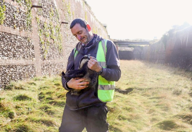 Graham with a rescued badger (Picture: Graham Lee/Solent News)