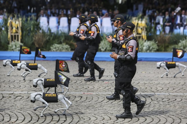 Polri showcased a team of dog robots during its anniversary event (Picture: Agoes Rudianto/Anadolu via Getty Images)