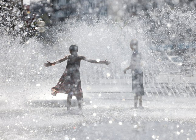 Children in Munich have been playing in fountains to cool off (Picture: AFP)