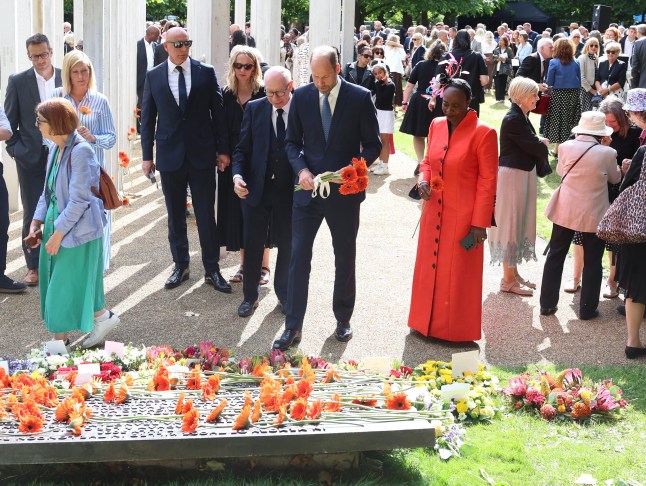Prince William laid a bouquet of flowers at the memorial event (Picture: Getty Images)