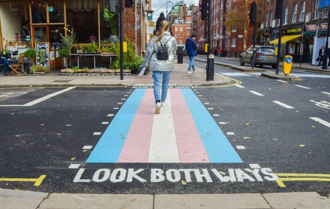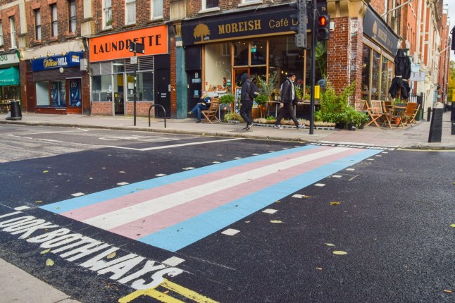 The pink,blue and white crossings in Bloomsbury were introduced by Islington Council in November 2021 to celebrate trans awareness and serve as a reminder of the LGBTQ+ history in the area.