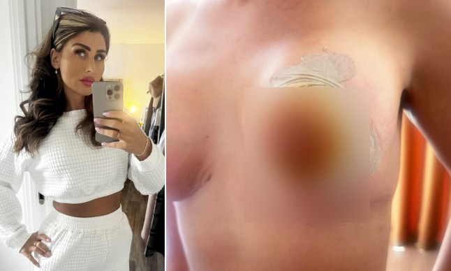 Doctors said she’d lost part of her nipple (Picture: SWNS)She explained: ‘I was on strong painkillers,I was really,really sore. I had drains on my boobs I had to empty myself every day after surgery and I couldn’t really see anything,there were bandages over it all.‘I had a course of antibiotics and painkillers for three days in the hotel they’d given us. We were stuck in the middle of nowhere,and there were building works,so I had to change hotels.’Chloe said the hotel issue raised a few red flags,but after a check-up four days later,all seemed fine,and the hospital redressed her scars.Doctors gave Chloe some paperwork about after-care,and the former healthcare professional was cleared to return to the UK.She said: ‘I followed all the aftercare. I have a nursing degree,I’m not silly,I know what I’m doing. They gave me all the bits and pieces I needed to redress,and I did all the redressing.‘I did notice on the boob that’s infected,the stitches looked like something was going on. The tape around it was slightly raised,but you couldn’t take it off,so I couldn’t see anything. And I had no feeling in my nipples,so I couldn’t feel pain or anything.’